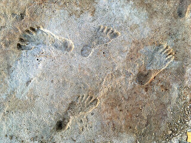 More than 60 fossilized footprints, buried in layers of gypsum soil, were dated between 21,000–23,000 years old.